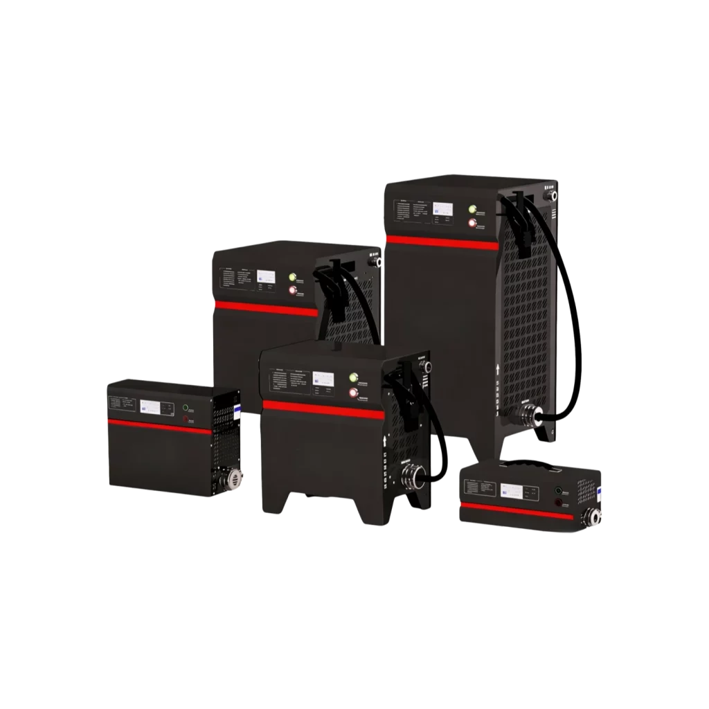 Charging and power solutions for electric forklifts, AGV/AMR systems, golf carts and sightseeing vehicles, electric motorcycles, yachts, drones, robots, excavators, industrial vehicles, cleaning equipment, and other automated applications.
